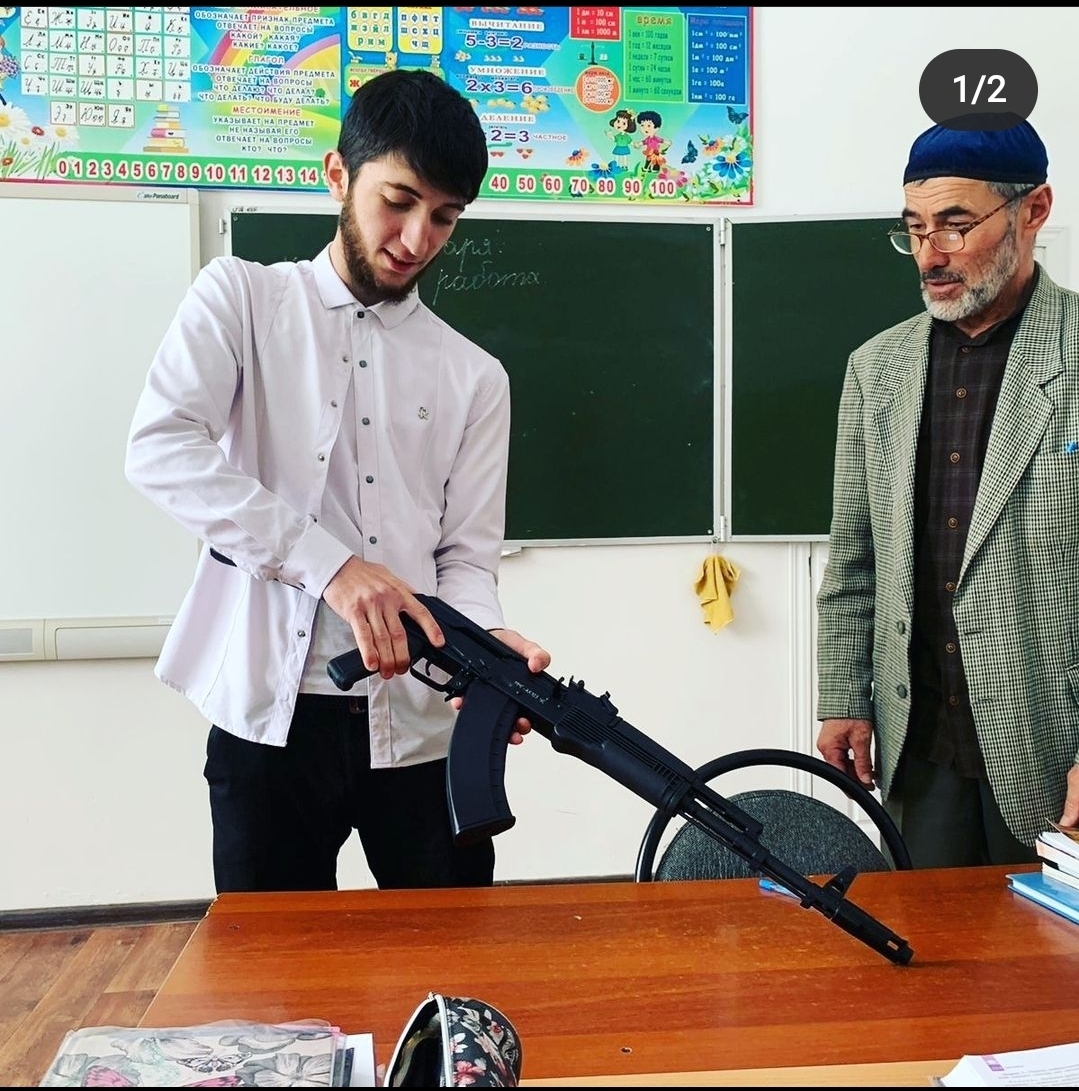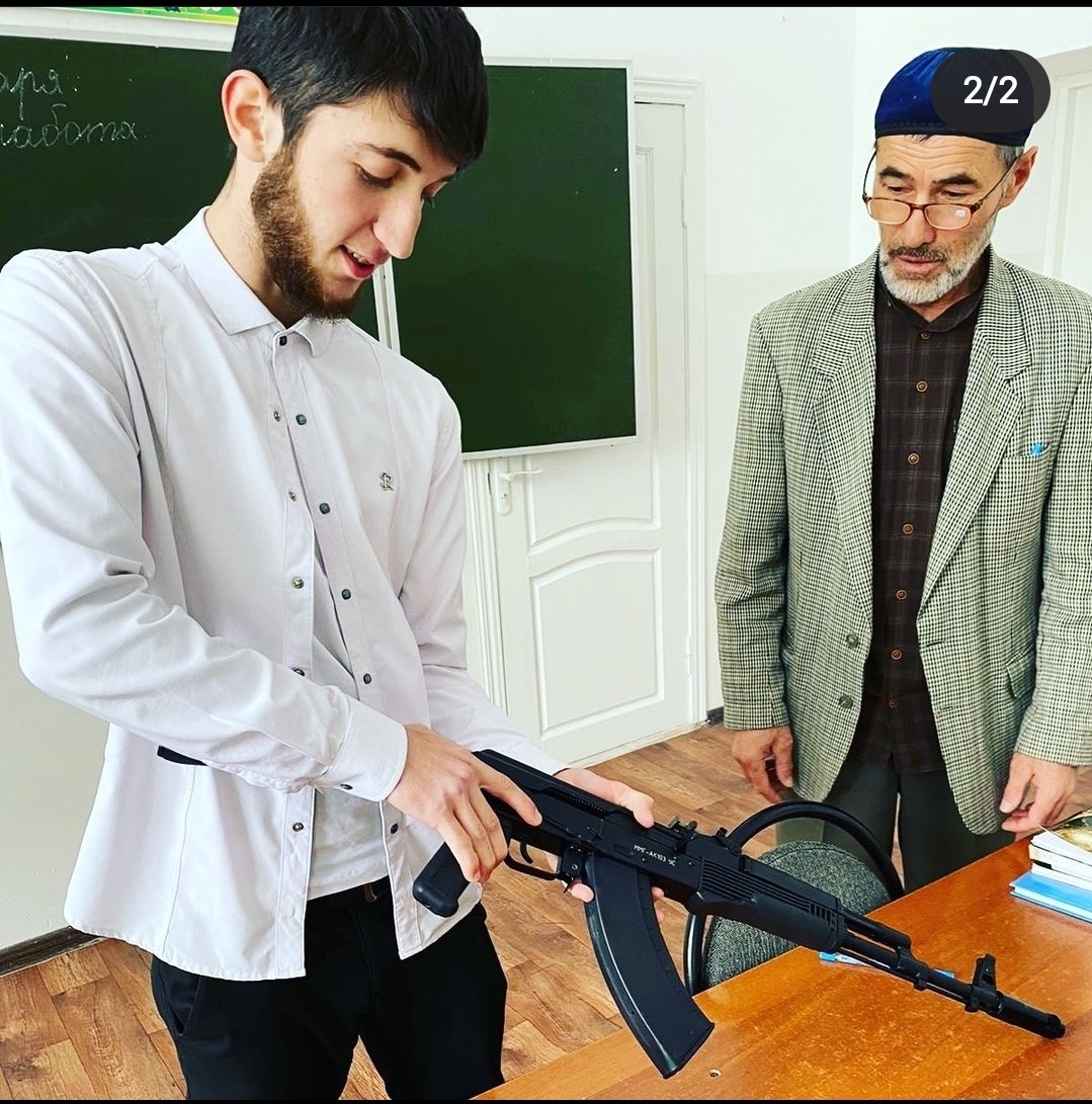 В целях допризивной подготовки молодёжи к дальнейшему прохождению военной службы в рядах Российской армии, руководитель отряда "ЮНАРМИЯ" преподаватель- организатор ОБЖ Тамалаев А.А. проводит занятие "Сборка и разборка автомата Калашникова АКА"