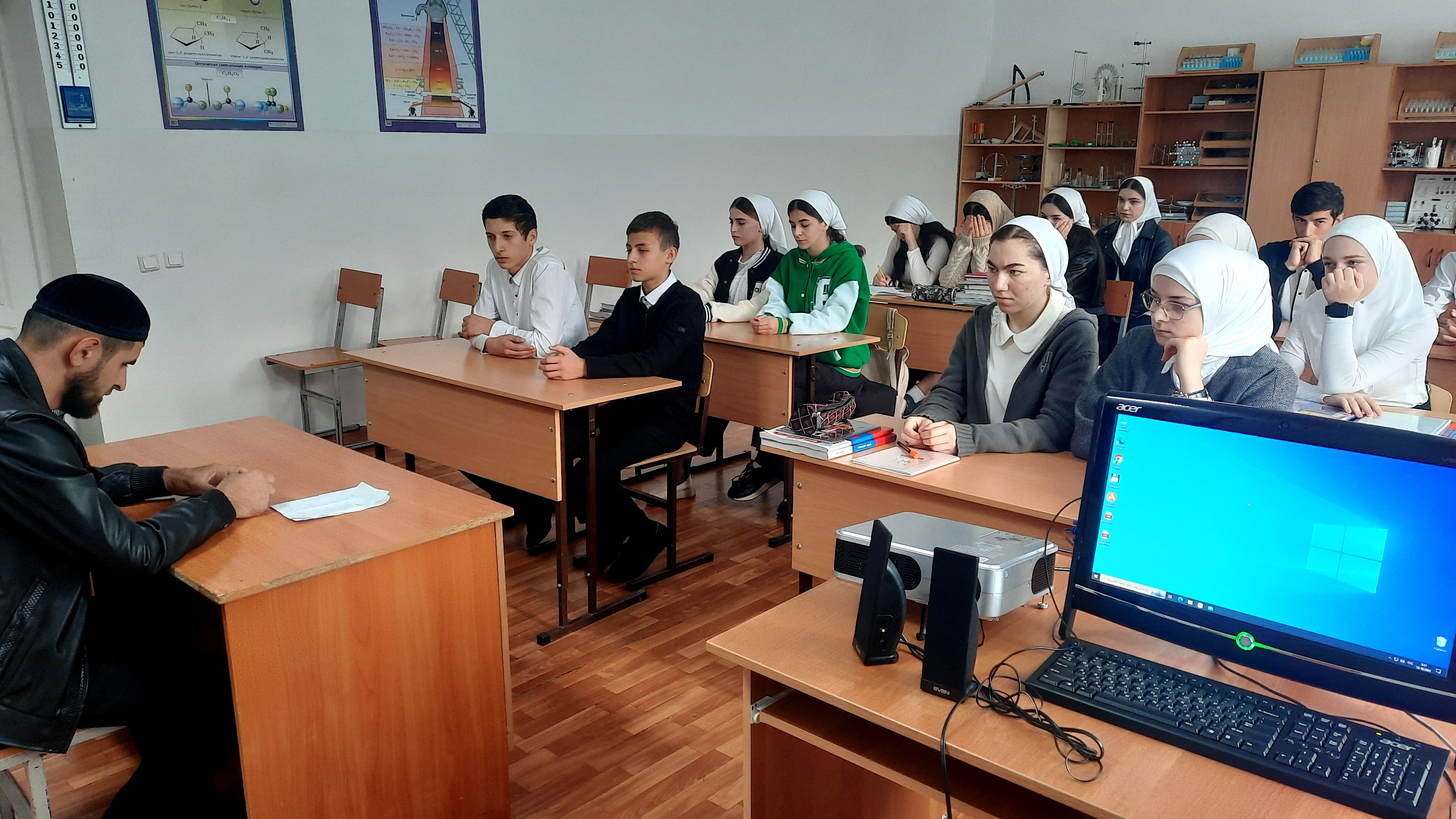 Проводили мероприятие заместитель директора по ВР Асхабов Д.Я. и педагог-организатор по духовно-нравственному воспитанию и развитию Цакаев А.А.