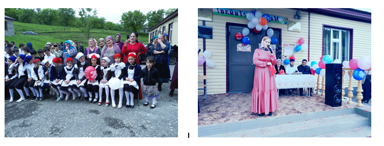 На линейке присутствовали, председатель администрации Веденского муниципального района ЧР Болатмурзаев Б. Х., методист РОО, родители, охрана.