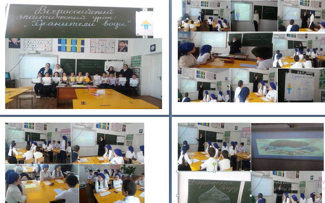 В МБОУ «Гунинская СОШ» ежемесячно учителя биологии проводят совместно с классными руководителями экоуроки. По графику 26 октября Всероссийский экологический урок на тему: «Хранители воды» провели кл. рук 7 кл. Алсултанова М. И. и учителя биологии Халаева З. А., Шехирова М. В.