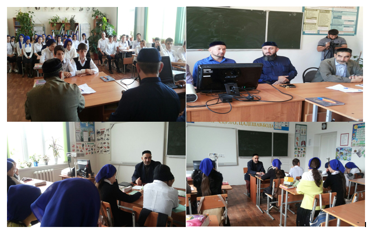 Педагог-организатор по ДНВ Цакаев А. М. проводит беседу с учащимися школы.